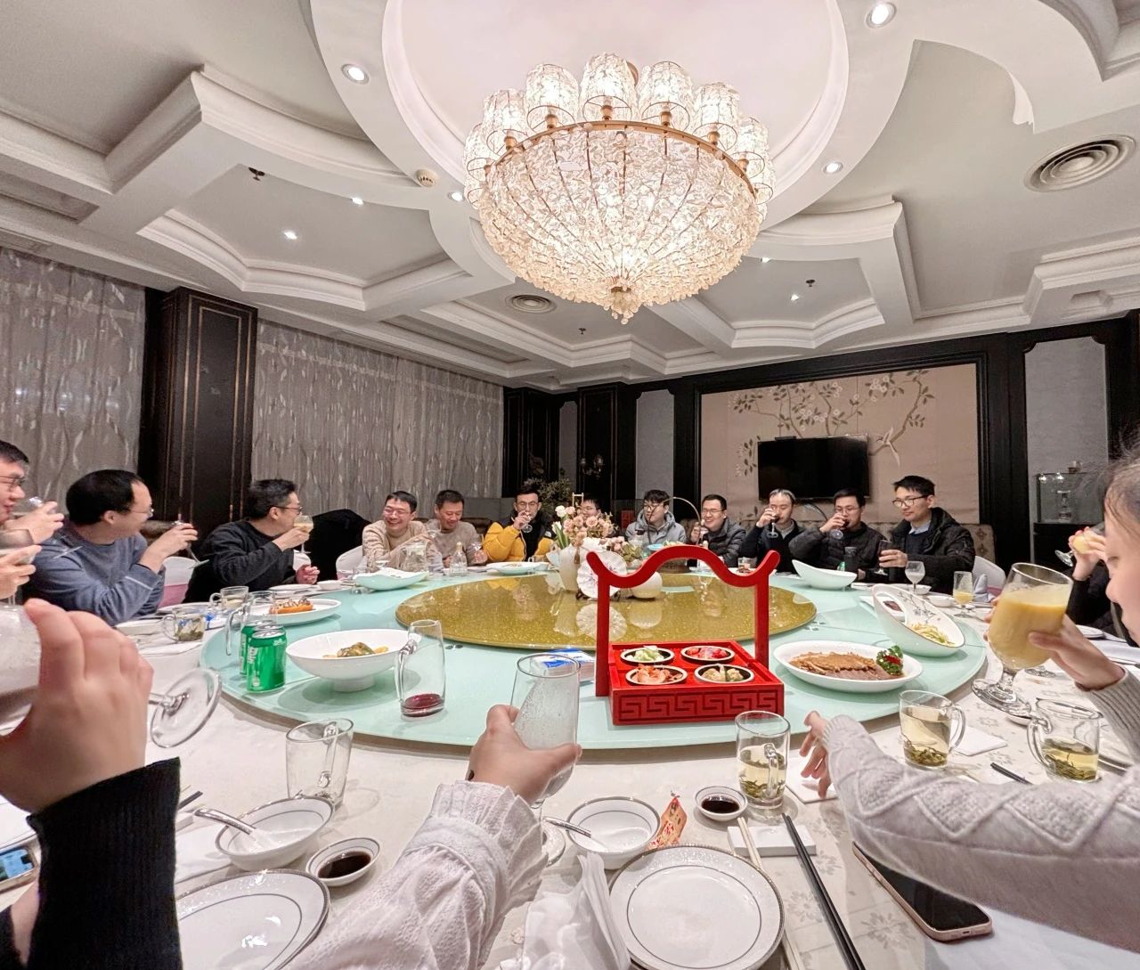會議結(jié)束后,公司安排了大家一起吃年夜飯,