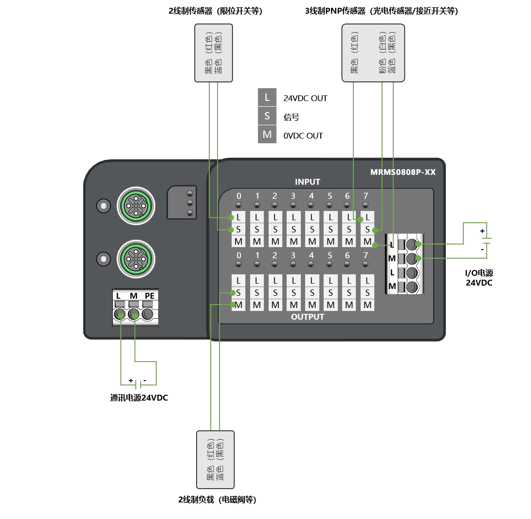 面板式快接線分布式I/O,PROFINET通訊,2xM12,可級聯(lián);數(shù)字量8入8出 PNP,24VDC,0.5A,歐式彈簧端子;導軌安裝&打孔安裝(下單時需備注)
