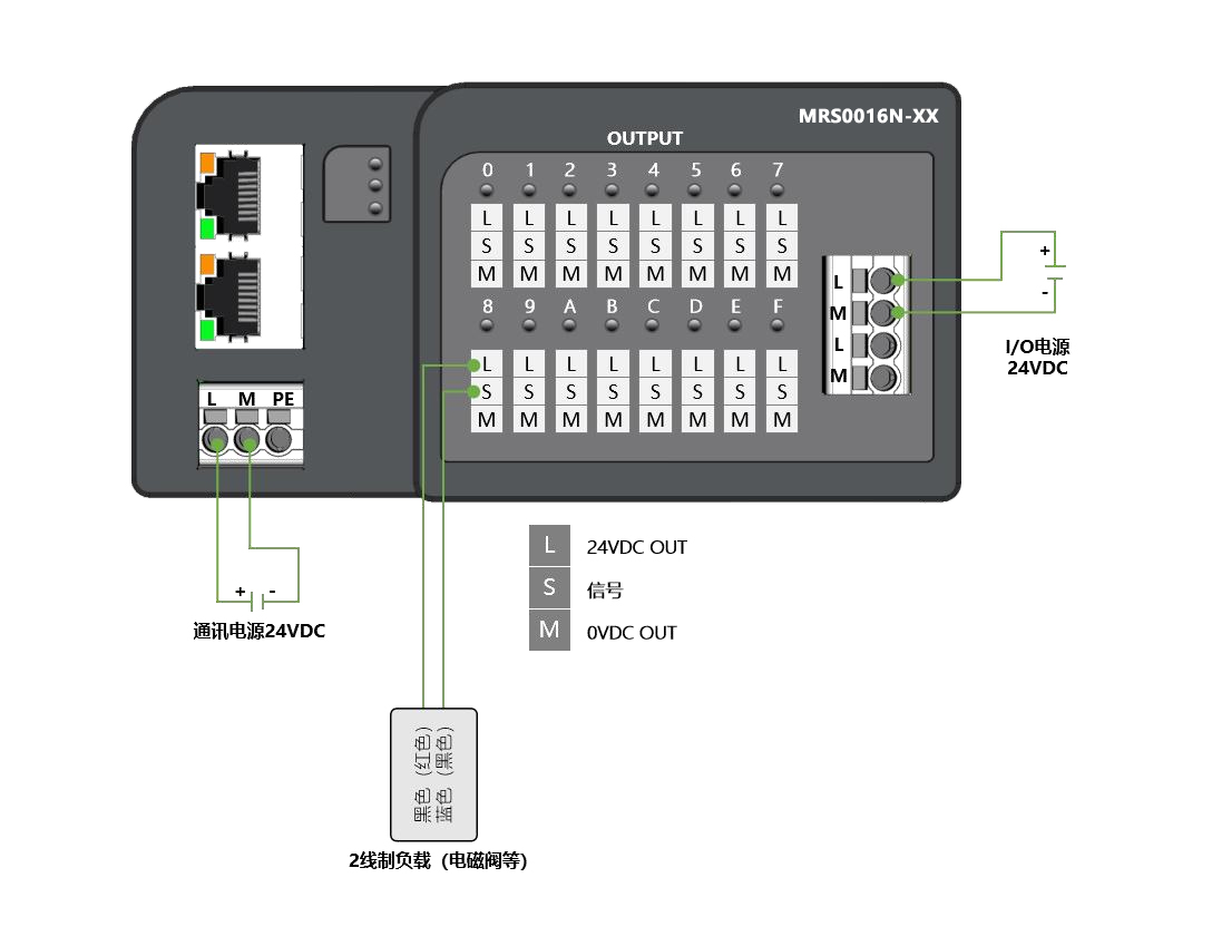 電源接口:模塊供電:3P歐式彈簧端子;負載供電:4P歐式彈簧端子